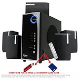 (More customer reviews)Ok so many people may think lower end or lower priced products are garbage. Well I have a bedroom with a toshiba 42 inch 1080p LCD and oppo dvd (hd upscaler) player, also an xbox 360, this frisby system handles it all. I can whack the volume up full and get NO DISTORTION....the 5.1 works great for this size room. Although obviously a bigger room you may want to consider a more powerful system. The bass is responsive, each "section" (center, rear front bass) is controllable and adjustable. There are 4 aux inputs which was very handy given I have so many things plugged in (although you only get true 5.1 with the direct 5.1 input and not the aux, the aux still does a great job of "mimmicking" 5.1 with a very nice surround sound.